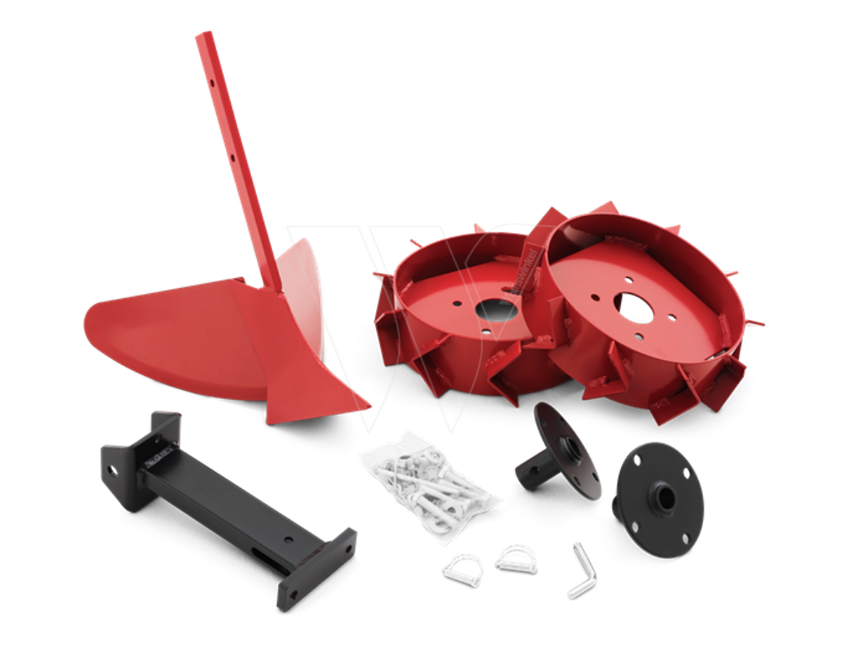 Gebruik uw frees voor het aanaarden van de bedden in de moestuin met de aanaardploeg. Voor T85, T50RS/HX, T56RS, T560RS, TF 224, TF 324, TF 334, TF 434, TF 434P.