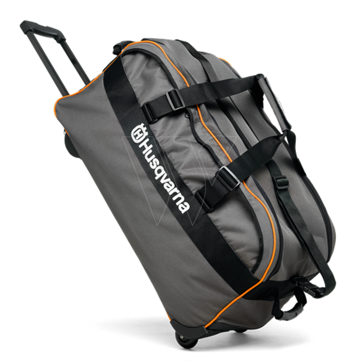 De Husqvarna bosbouwtas is uitgerust met een uittrekbare handgreep, stevige bodem, zijvakken, handgrepen aan zijkant en draagriemen.