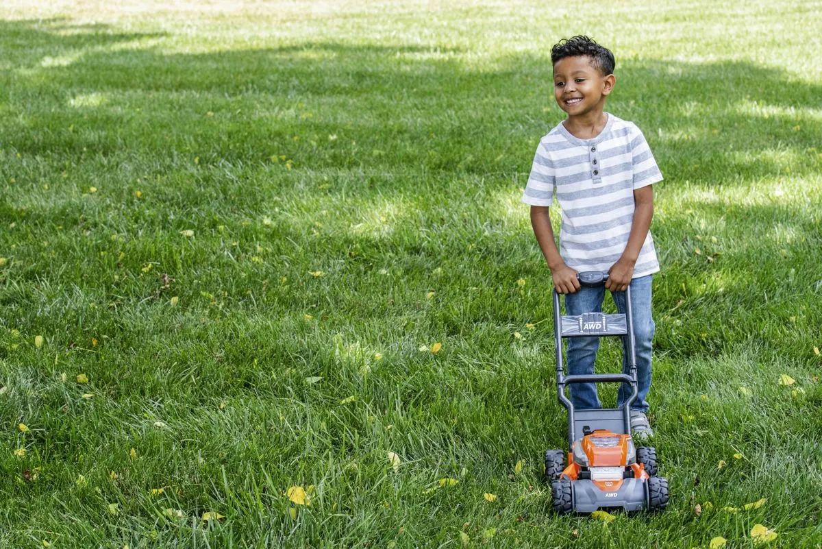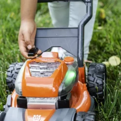 De Husqvarna speelgoed grasmaaier is een perfect cadeau voor kinderen van 2 jaar of ouder. Met geluiden, verlichting en echte motor.