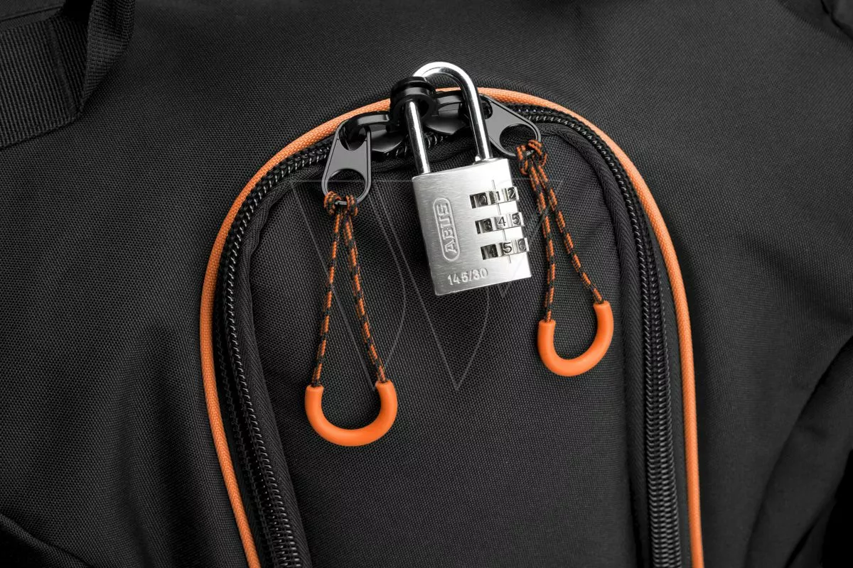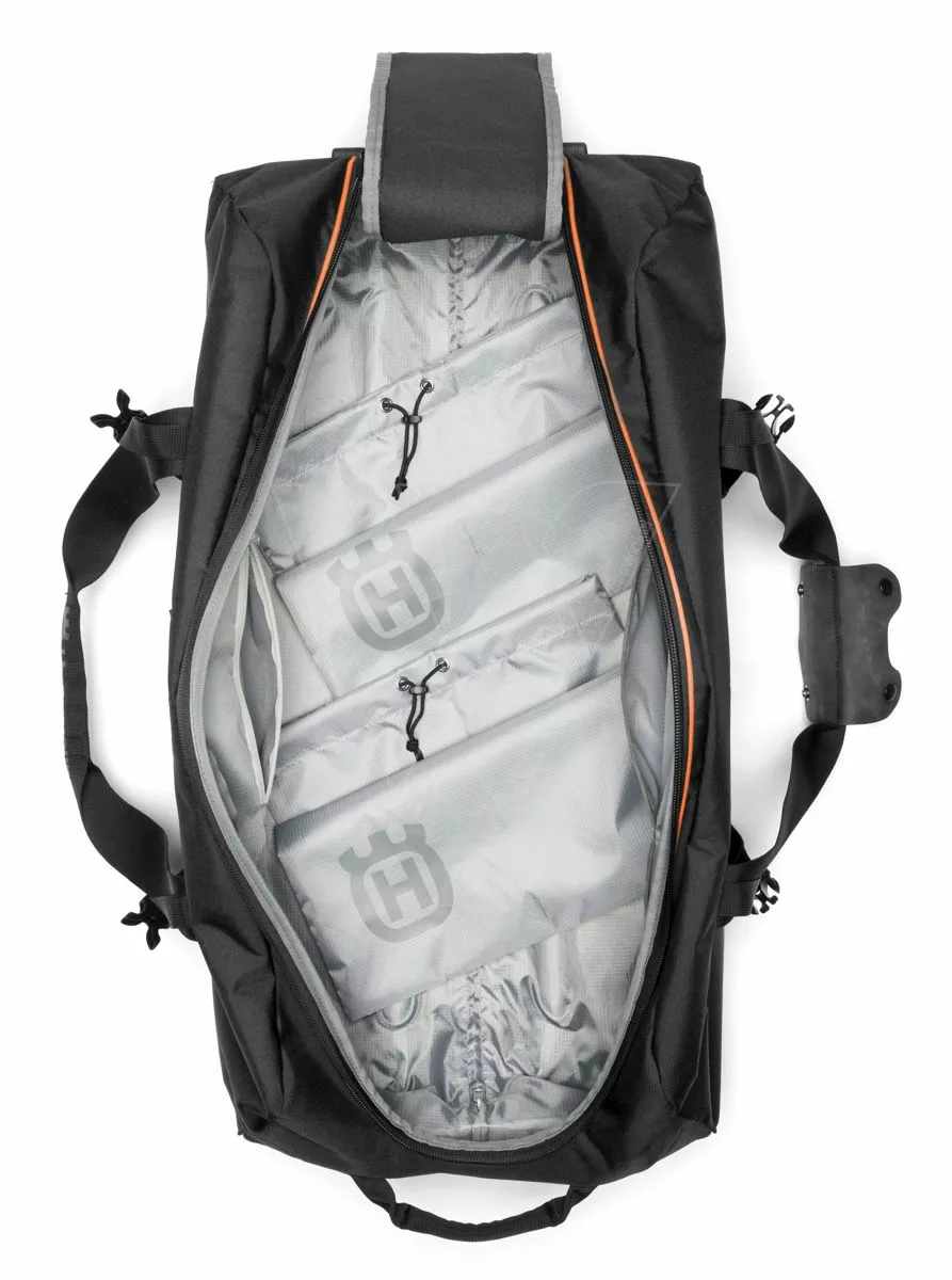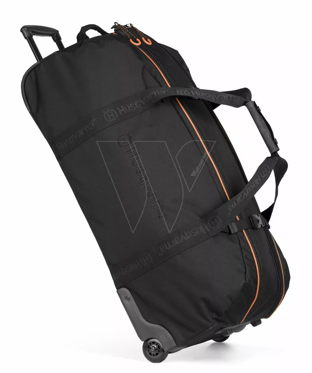 De zwarte trolley tas met oranje accenten is een sterke en duurzame tas met een harde en stabiele bodem. Ruime tas, perfect om je veiligheidsuitrusting en accessoires mee te nemen of voor een weekendje weg! De Husqvarna trolley tas Xplorer is uitgerust met een uittrekbare handgreep, stevige bodem, zijvakken en handgrepen. Er kan ook een slot gemaakt worden aan de ritssluiting. Deze tas biedt ruimte voor al uw benodigdheden.